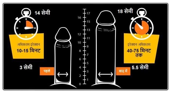 जब आपका लिंग छोटा हो गया है तो आप हमेशा शर्मिंदगी और आत्मविश्वास की कमी महसूस करते हैं! प्रयोग से पता चला है कि उत्पाद का फॉर्मूला शुद्ध और व्यावहारिक है और इसको कोई दुष्प्रभाव नहीं है! इसमे मुख्य रूप से दुर्लभ जड़ी बूटीयां और प्रकृतिक आर्क शामिल है, और इसके प्रभावो की पुष्टि कई राष्ट्रीय प्रयोगशाला द्वार की गई है और सबसे महत्वपूर्ण बात ये स्वास्थ्य और परिवार कल्याण मंत्रालय द्वार अनुमोदित है! इसके फार्मूले का पेटेंट हो चुका है और गुप्त है और अभी हमने इसके प्रयोग के बारे में बताया है कि किसी के साथ सहज करने का अधिकार नहीं है